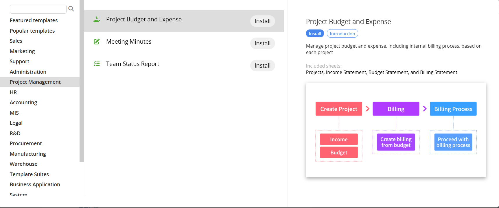 If you are already a Ragic user, you can find the "Project Budget and Expense" template under the "Project Management" category in Install Templates and click "Install" to download it.