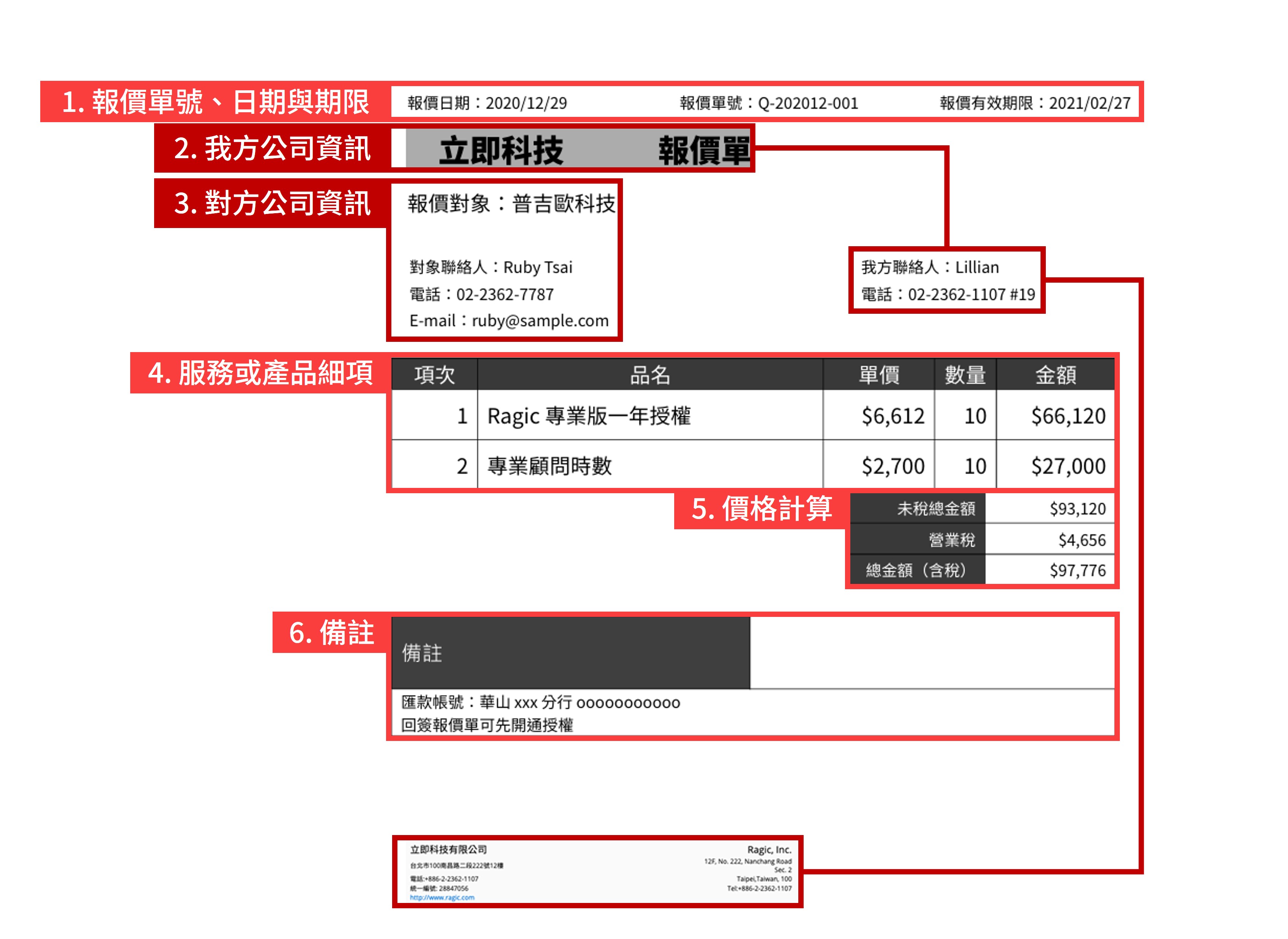 舉例來說,你可以利用 Ragic 的企業報價單產生器,在幾分鐘內產生精美好用的報價單。